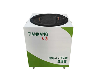 该罐为敞口式防爆罐,罐体由内至外依次为10mm厚特种钢板+吸能缓冲层+10mm厚钢板,底部装有四个脚轮。可以弱化爆炸威力达到保护人员和财物的目的。